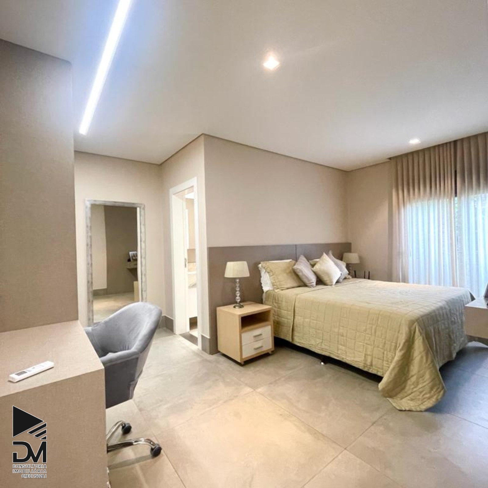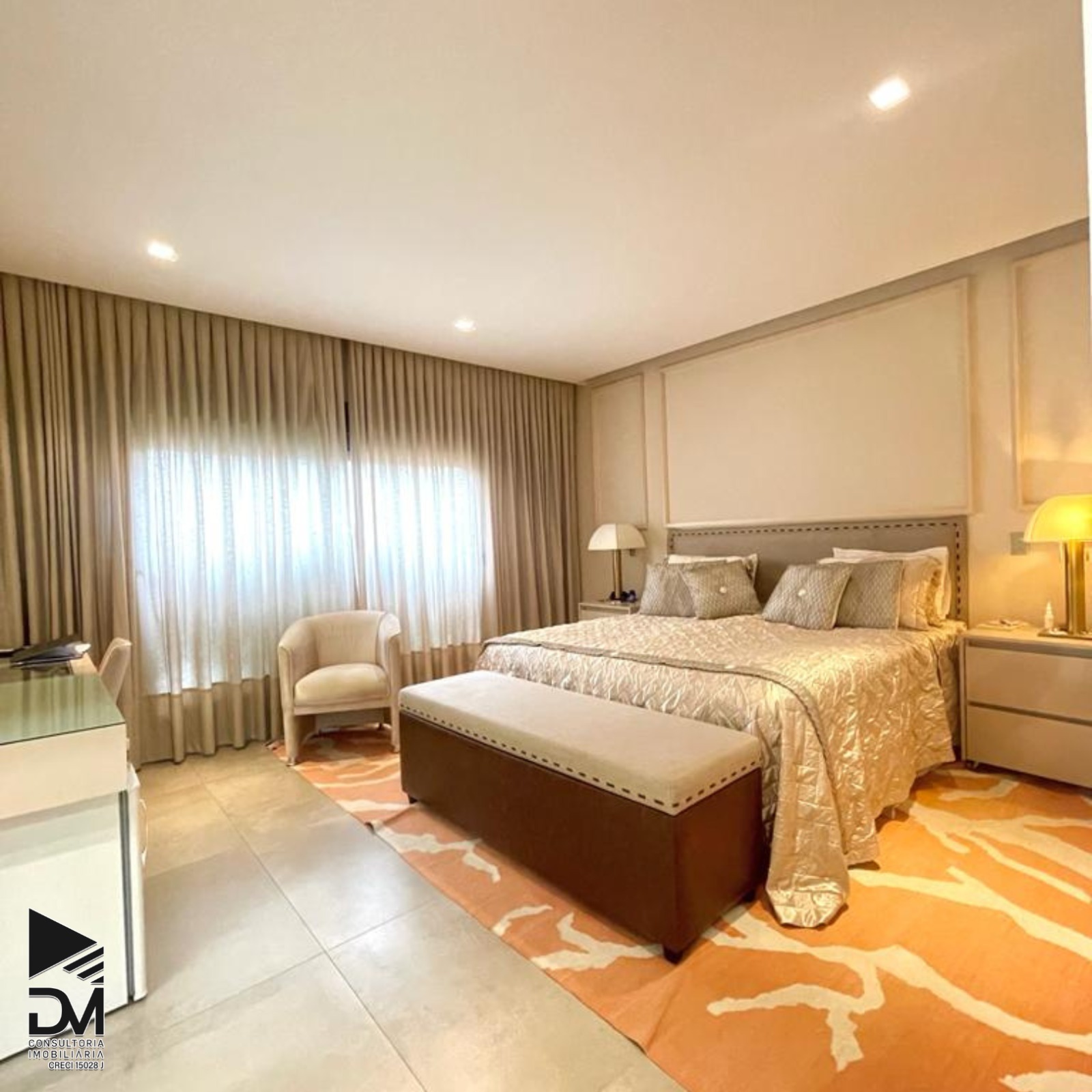 4 Suítes, sendo 3 Suítes no piso superior, a Suíte Master com Closet, banheira e uma Suíte reversível no térreo.